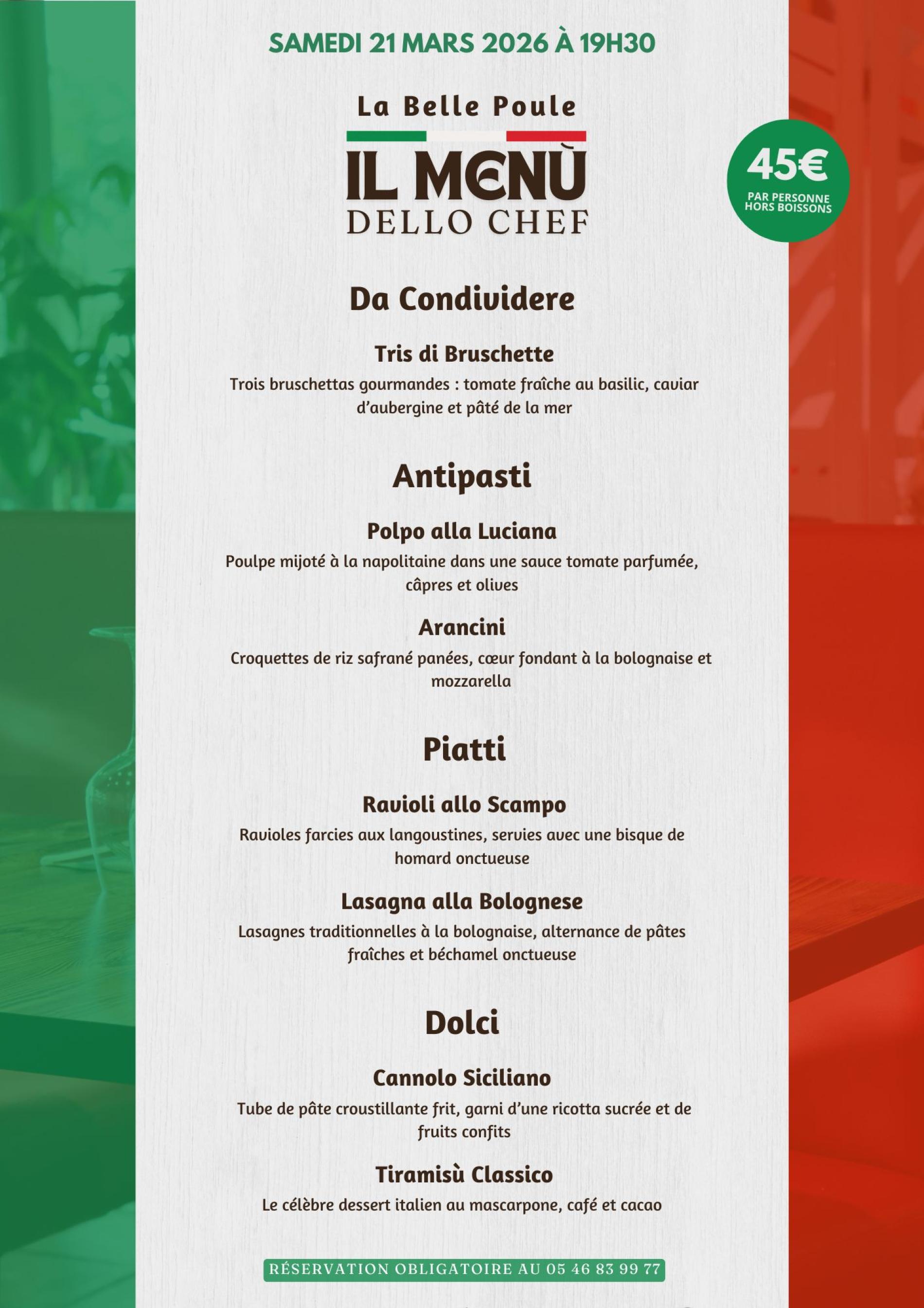 The chief revisits with finesse and elegance the beautiful traditional recipes that celebrate the region. His dishes are home-made and generous, made from fresh seasonal produce. And the desserts propose unique original flavors!